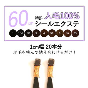 シールエクステ 60cm 20本(1cm幅40ピース)ダークカラー <特許商品> レミー人毛100%だからコテ・アイロンOK♪外れにくい♪装着部分が凸凹せず自然♪ メッシュ イメチェン アレンジ ハイライト ローライト コスプレ イベント かわいい オシャレ ファッション 夏休み