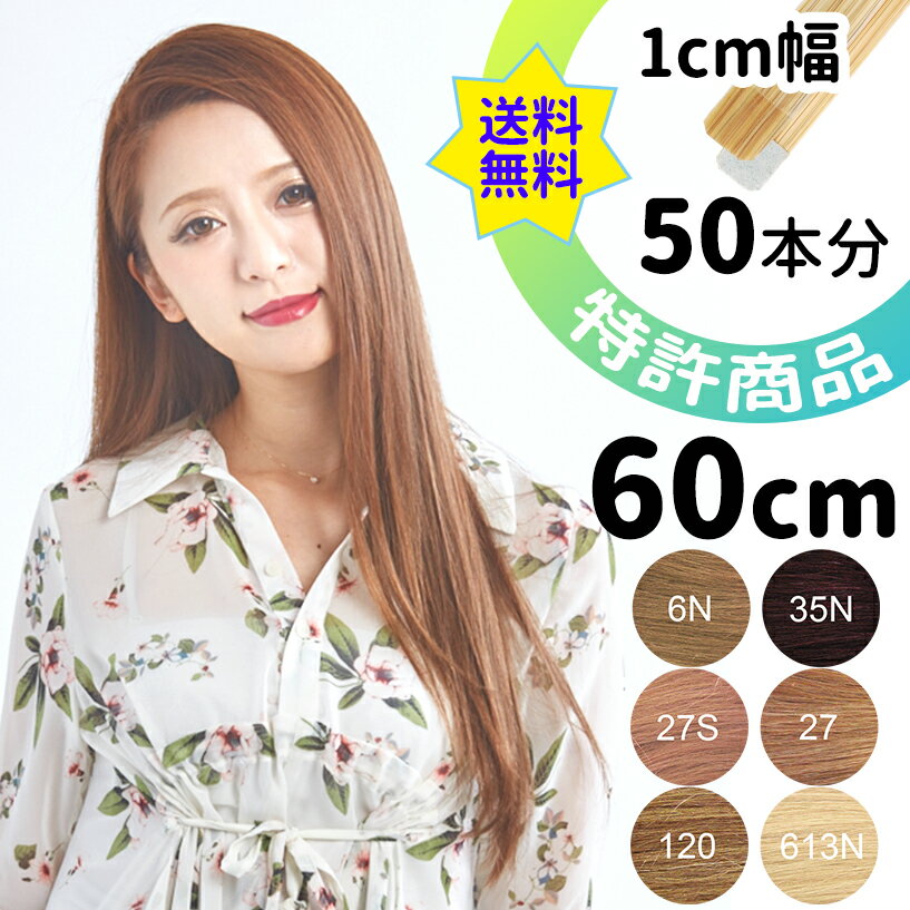 シールエクステ 60cm 50本分(1cm幅100ピース)ライトカラー レミー人毛100%<特許商品>コテ・アイロンOK★装着箇所がデコボコしない♪ヘアーエクステ イメチェン ヘアアレンジ グラデーションカラー インナーカラー コスプレ イベント 夏休み カワイイ 【送料無料】