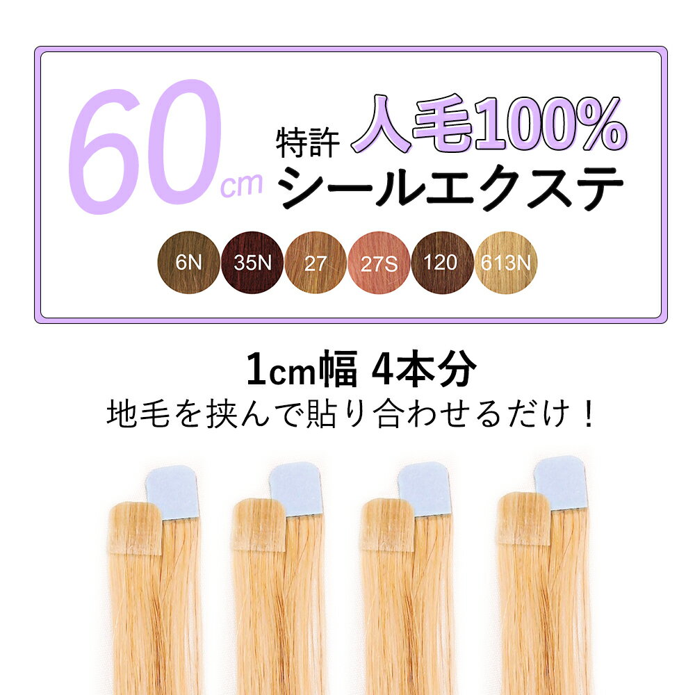 シールエクステ 60cm 4本分(1cm幅8ピース)ライトカラー全6色 レミー人毛100% メッシュに★腰までスーパーロング イメチェン ヘアーアレンジ ハイライト ローライト インナーカラー イベント パーティ コスプレ イベント ヘアアレンジ 夏休み